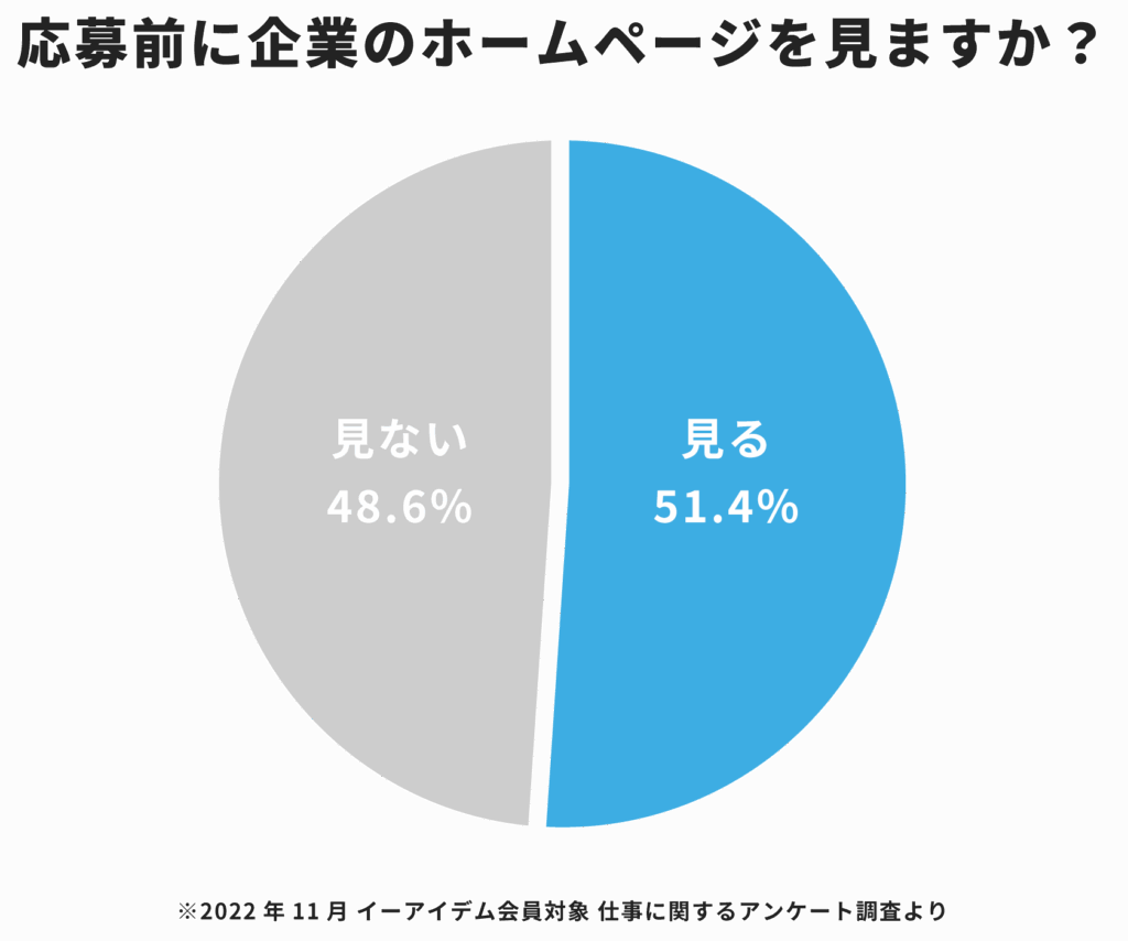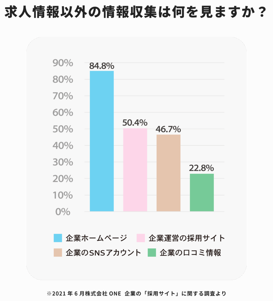 求人を見た求職者の2人に1人はその会社のホームページやSNSアカウントをチェックしています。求人を見たから応募しよう!という人はこれからもどんどん少なくなってきます。御社はちゃんと情報発信できていますか?
